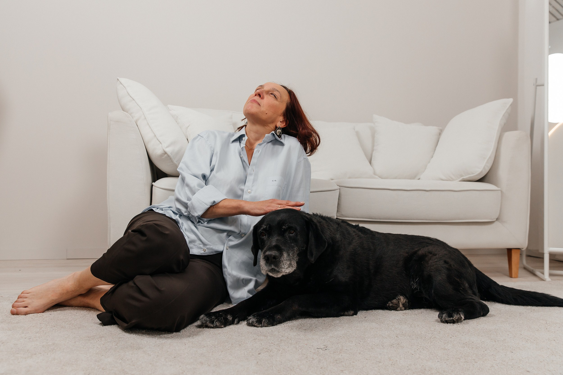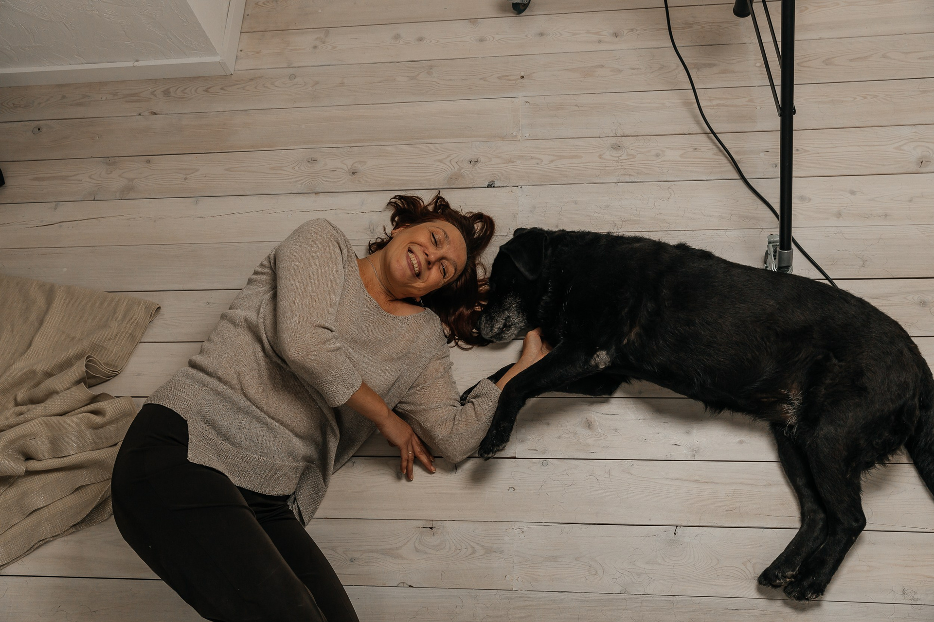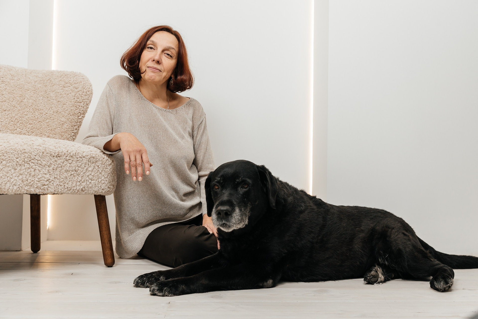 Татьяна психолог по профессии. Она обратилась ко мне за фотографиями для контента в соцсетях. Так как её специализация канистерапия, мы решили сделать фото с собакой. Была выбрана студия, допускающая съемку с животными. В процессе съемки мы сделали портреты с разными эмоциями, для постов с разными ситуациями.